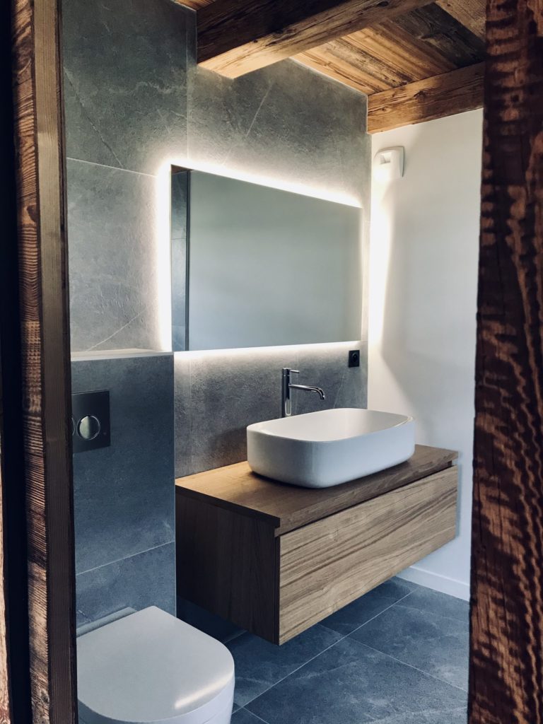 La mission a débuté dès la conception, en collaboration avec l’architecte DPLG afin d’assurer une parfaite cohérence entre l’intérieur et les volumes extérieurs, notamment pour relier harmonieusement le chalet principal à un second bâtiment connecté par un passage souterrain.
